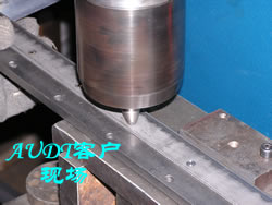 設備的操作步驟及功能描述:設備加好 32# 液壓油,接好電源后 ( 黑線接 220V 零線,不能接地,如果二次接地,設備會自鎖),接通液壓管路 A-A/ /B-B,將主軸上的微調旋轉刻度盤向上旋至高點,按下控制面板上的 ” 油泵啟動 ”” 主軸啟動 ”,此時液晶顯示器面板上將顯示 ” 油泵啟動 ”” 主軸啟動 ” 的字樣 ,油泵 motor 旋轉方向應為指示的箭頭方向,將控制模式設置為 ” 手動 ” ,此時液晶顯示上面會顯示出 ” 手動 ” 字樣,按下面板上 的 ” ▽ ” 開關旋鉚主軸下行按一次下行 2mm 直至低點,進行對模操作,好使主軸剛好碰到工件的表面,對好中心后,鎖緊下工裝,然后逐步按下面板上的 ” △ ” 此時主軸開始向上運動。主軸開始順時針旋轉( 從上向下看 ),操作人員將零件放入定位夾具中,將控制模式設置為 ” 自動 ”,主軸下行時間調節至 2.5 秒,主軸上行時間調節至 2.5 秒,此時開始旋鉚工件了,但僅是剛接觸工件表面,然后慢慢地旋松上面的刻度盤,此時已逐步開始旋鉚工件了,再按下雙手按鈕或腳踏開關啟動設備,液壓缸行程工作,對工件逐步旋鉚,邊調節刻度盤邊旋鉚,直至工件鉚成需要的形狀以及松緊度的要求,然后鎖緊刻度盤,再放入第二個工件即可完成合格的產品加工,在操作過程中,速度調節可以通過機器側面的調速旋鈕來完成速度的調節,本設備無沖擊,無噪音,旋鉚頭接觸工件,下壓鉚合行程,開始工作對產品裝配,產品裝配后,則電腦 CPU 開始起動,控制返程與進程。從而實現旋鉚壓力在規定的范圍內無級別可調。 為了控制設備的工作效率 , 可以在設備的鉚合行程范圍內,將電腦主板上面的上行時間與下行時間進行設定,以調節合適的范圍內,達到高效率。